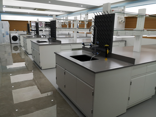 3.活動背板:中央臺中部(柜體背面)為設備夾層,柜子后部有可移動檔板,用于隱藏從地面預留或天花板引出功能柱到實驗臺面的水、電、氣管路,可在不用任何工具的情況下進入維修通道。